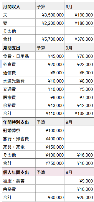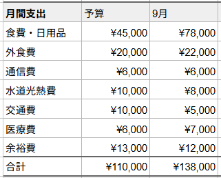 スーパーで日用品を買うこと多いので、食費と日用品はまとめています。
