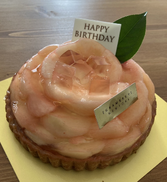 夫が誕生日だったので、梅田で桃のタルトをホールで購入。