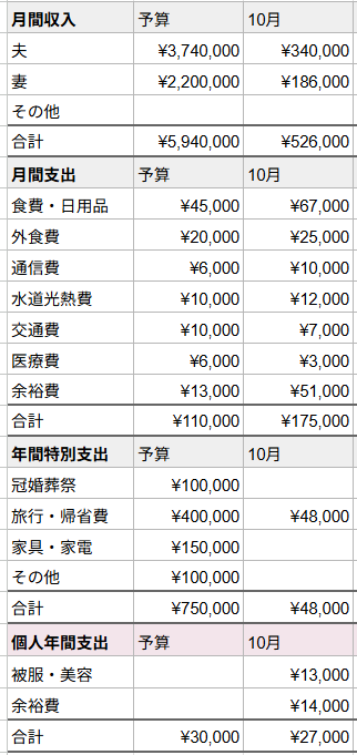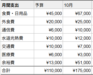 スーパーで日用品を買うこと多いので、食費と日用品はまとめています。