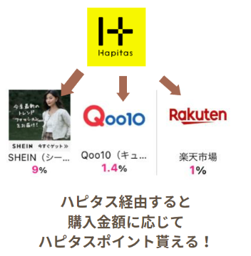 ユニクロやGUも対応しているので、実店舗では買わず、ハピタス経由してネットで買うようにしています(小声