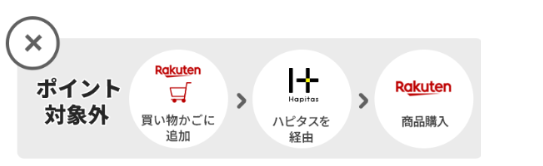 注意点は、楽天アプリで買い物かごに商品を追加後にハピタスを経由すると、ポイント対象外なので注意必要です。